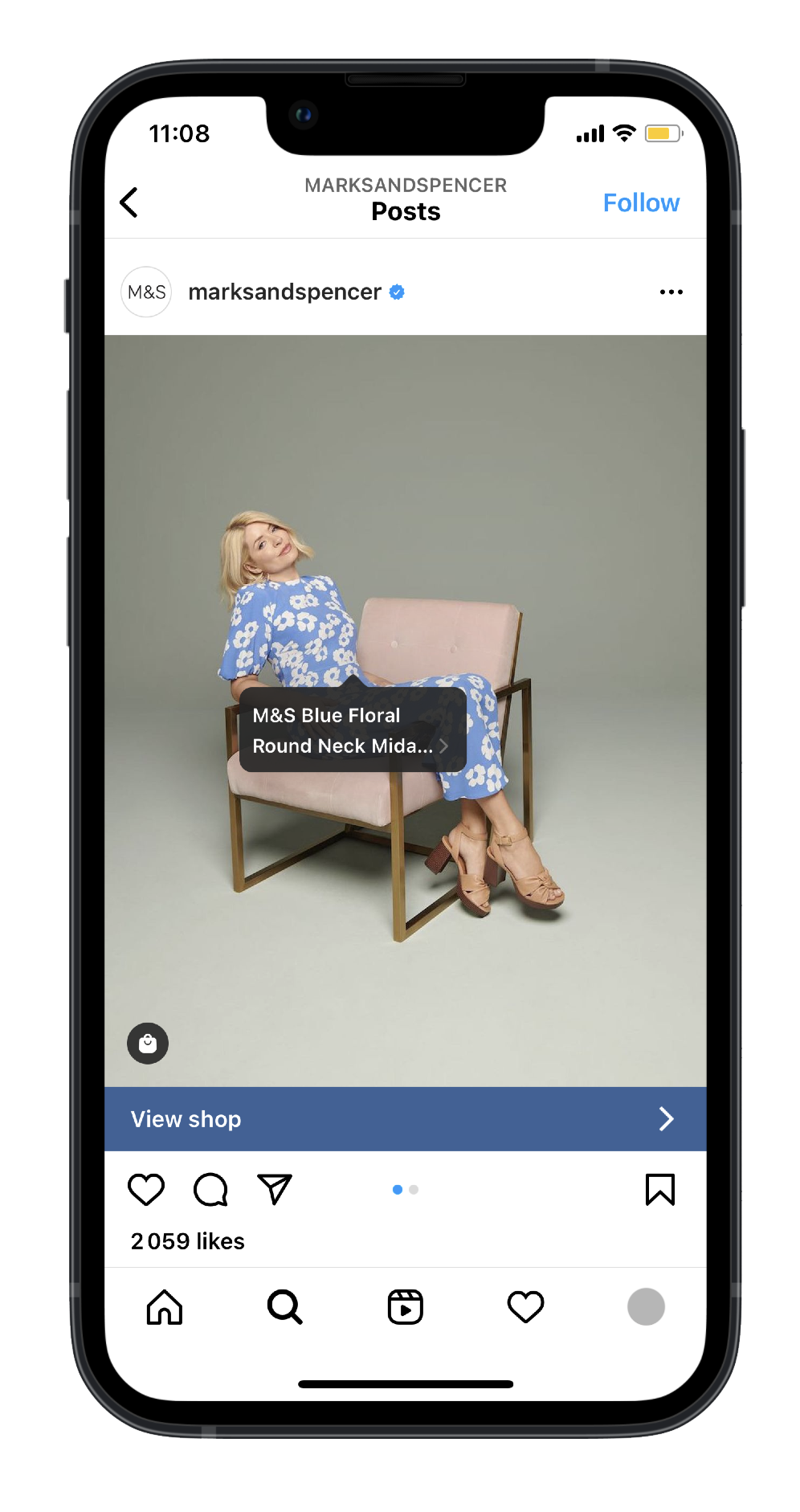 1. If the post has a shopping tag attached, click on the item to open the pop-up view